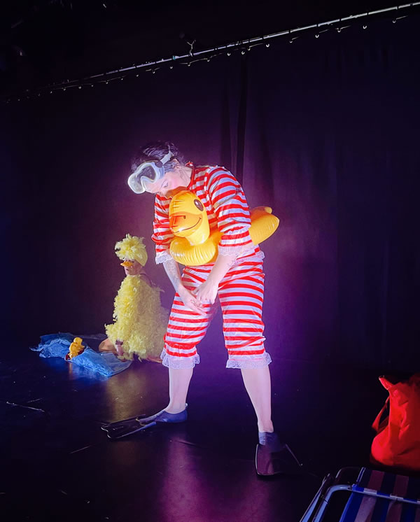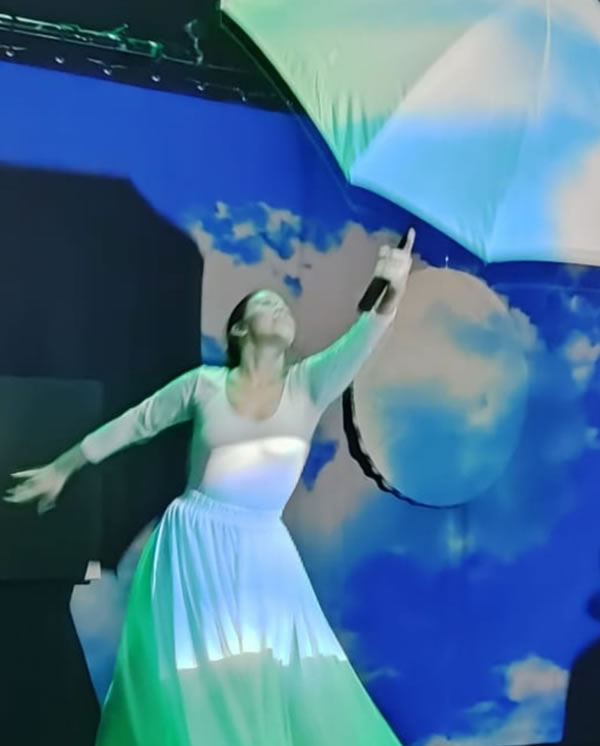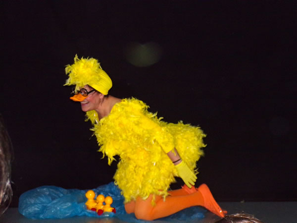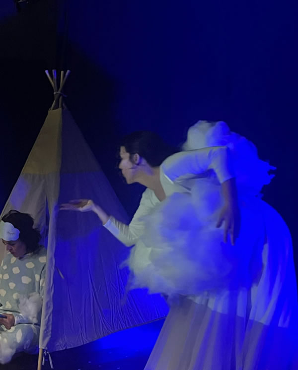 El elemento agua está muy presente en la obra, como fuente de vida… (agua limpia para los patitos que ha tenido la Pata Cegata, su sonido, agua que nos traen las nubes….. agua como fuente de VIDA.
